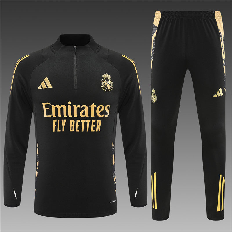 Buzo Completo Real Madrid Negro Dorado